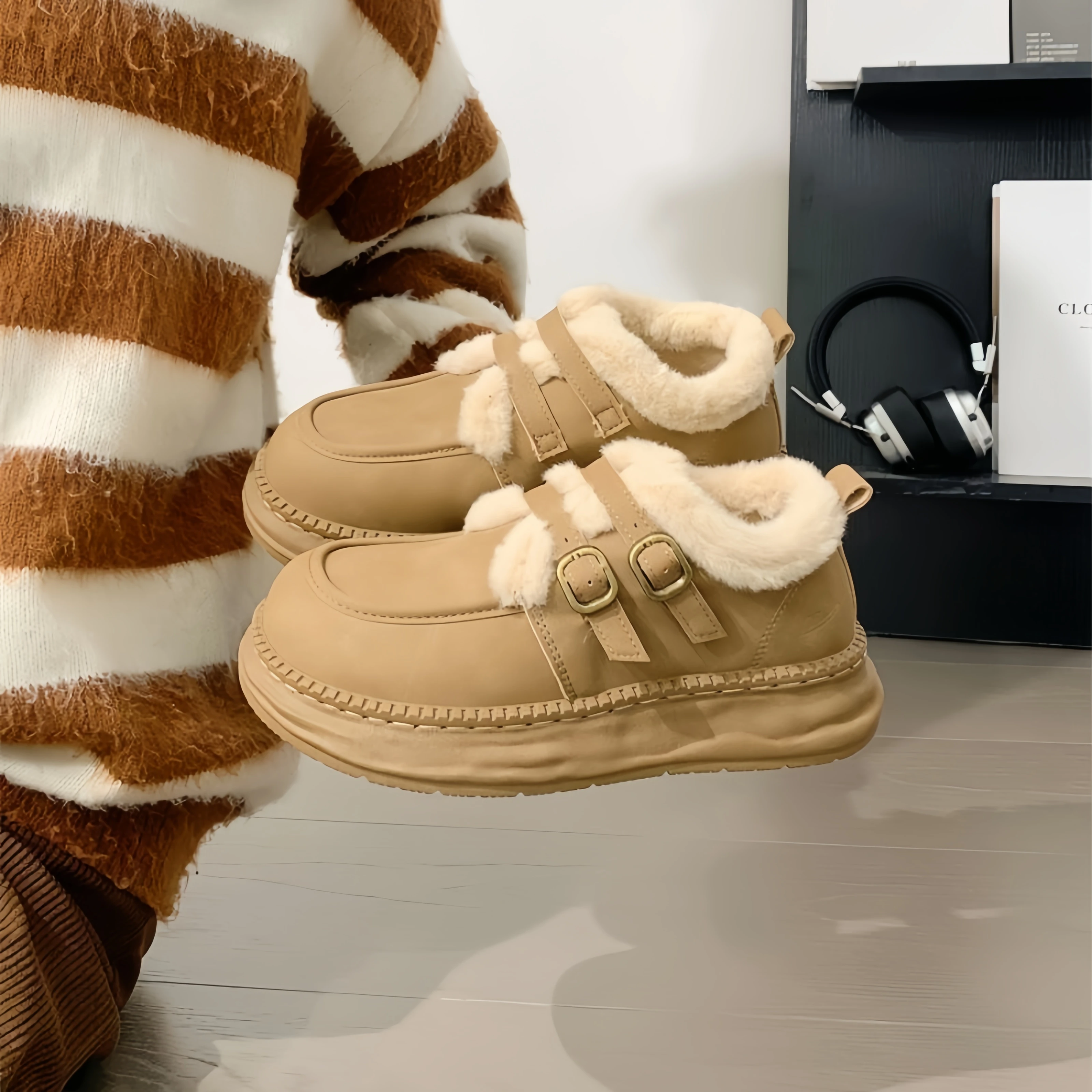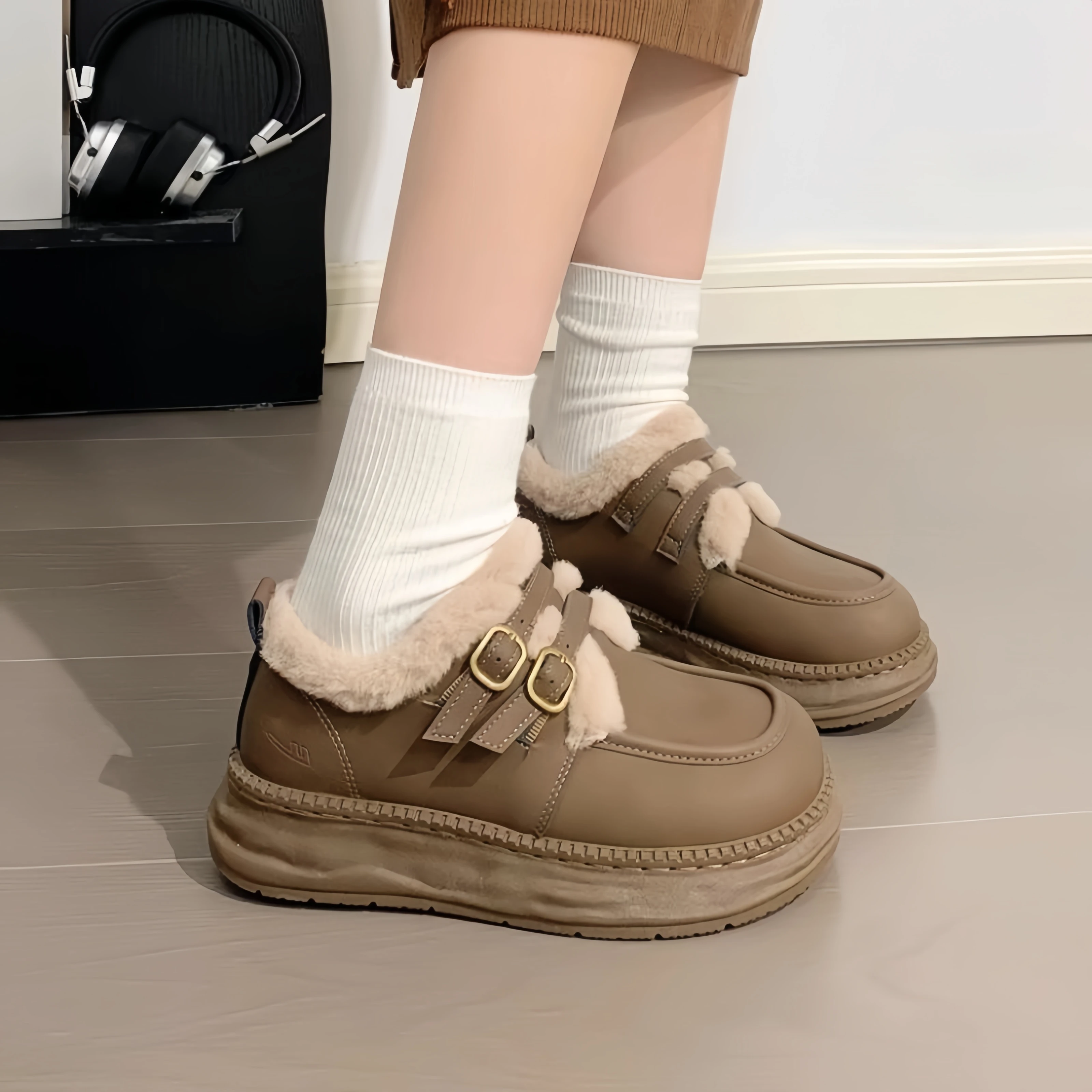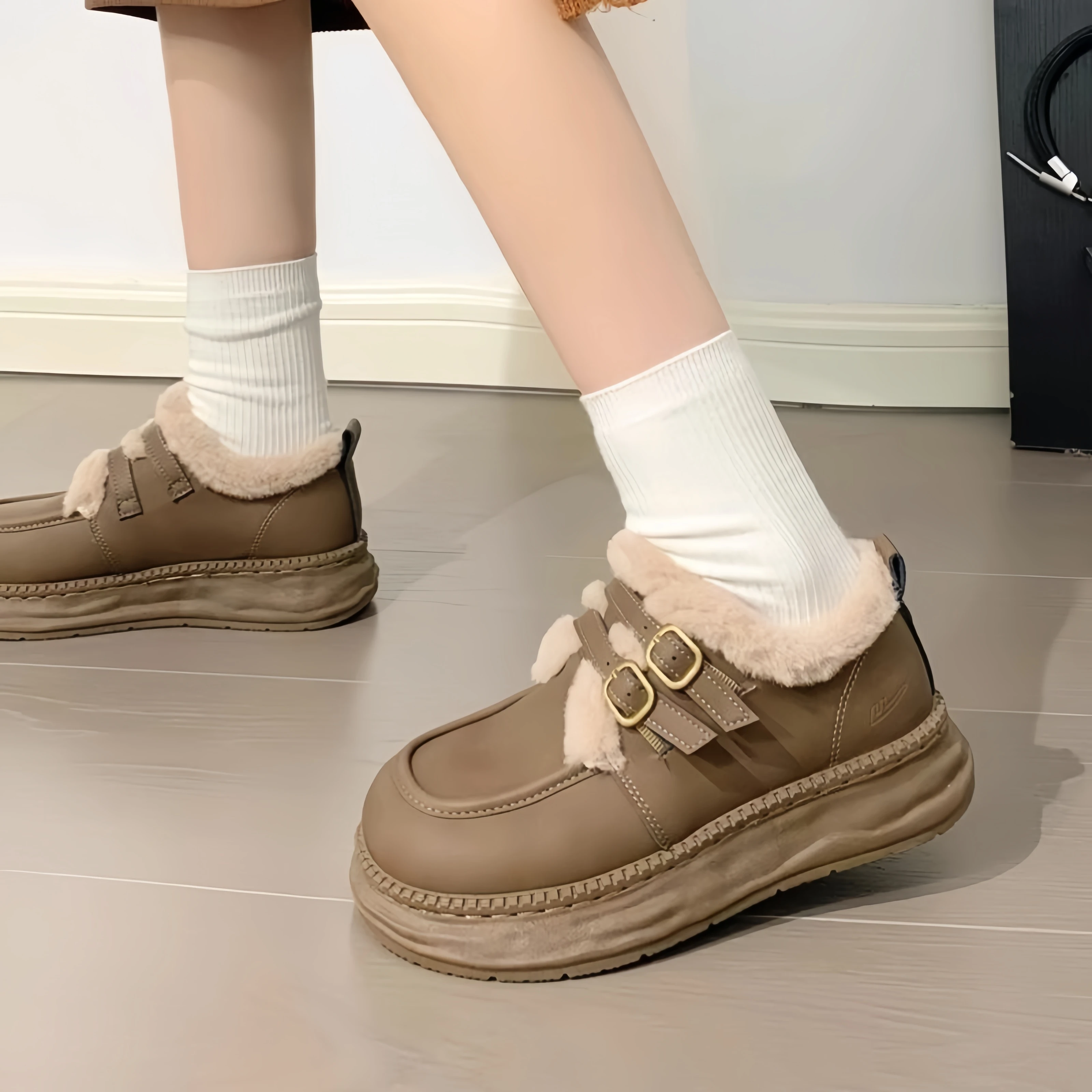 Double Strap Monk Buckle Women's Winter Dress Shoes Slip on Comfortable Warm Breathable Lightweight Wool Upper Loafers
